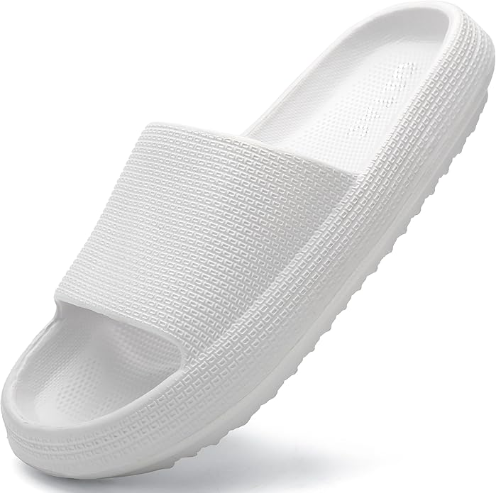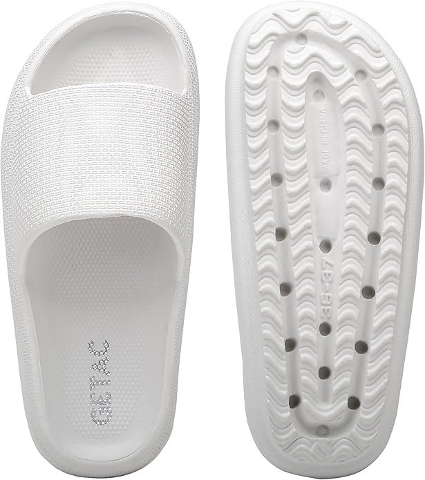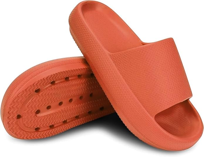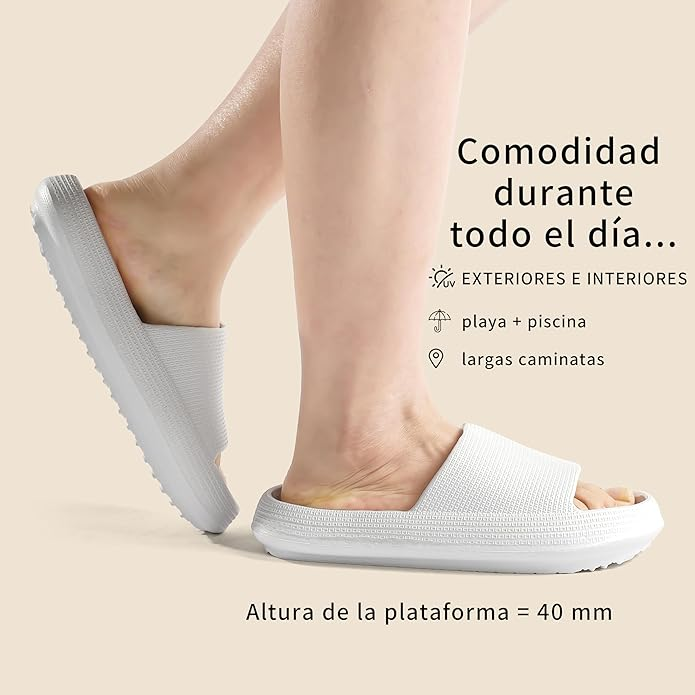 Materiales premium: Estas pantuflas tipo almohada están hechas de materiales premium que son resistentes al desgaste y livianos. Sin olores, cómodas y lo suficientemente flexibles para usar en la casa en pisos de madera, lo ayudan a sentir una relajación profunda en sus pies. Antideslizante y absorción de impactos: Estas sandalias están hechos de material de textura cóncava-convexa antideslizante para evitar que se resbale y caiga, así como para evitar que su pie se salga. Aproximadamente el diseño de protección de la cabeza de inclinación hacia adelante de 15 °, absorción de impactos hacia adelante y hacia atrás, reduce el daño del pie. Diseño ergonómico: Estas zapatillas de casa para mujeres y hombres fueron diseñadas en base a la forma del pie, se ajustan perfectamente a la curva de su pie. Las zapatillas de casa están ligeramente empotradas para envolver perfectamente sus pies, el ángulo de ajuste equilibra la presión. Lo suficientemente cómodo para usar día sin fatiga. Sandalia con plataforma: El elegante diseño de las chanclas para hombres y mujeres junto con la comodidad de la suela gruesa de 1.6 pulgadas te mantiene a la moda y realza su apariencia de manera divertida. Tiene más apoyo que las pantuflas ordinarias y será tu par favorito de sandalias gruesas. Son elegantes, lucen lindas con cualquier atuendo. Ampliamente utilizado: Apto para todas las estaciones, baño, dormitorio, sala de estar, spa, gimnasios, piscinas, playa, vacaciones, dormitorio universitario, duchas públicas, camping. Las pantuflas tipo almohada mantendrán tus pies felices sin importar a dónde te lleven.