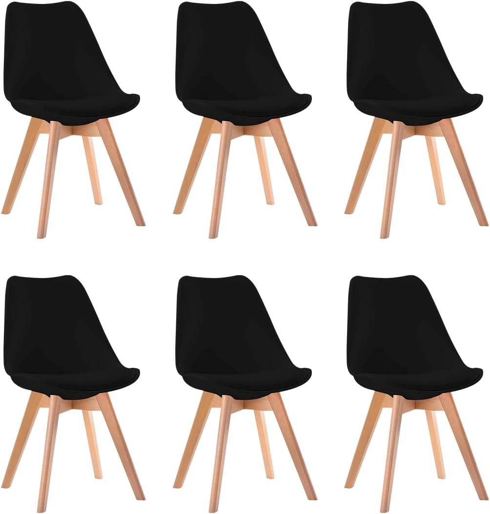 - 🌟 MATERIAL DURADERO: Fabricada con plástico polipropileno, asiento de PU fácil de limpiar, y patas de madera de haya robustas y estables.